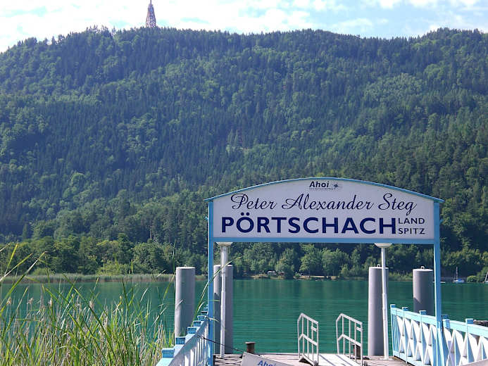 Ein kurzer, aber steiler Anstieg. Zwischen Hohen Gaisrücken und Pörtschacher Alm zweigt der hellblau markierte Zubringerweg nach Pörtschach vom originalen Wörthersee Rundwanderweg ab. Man geht einen Karrenweg durch recht steiles Gelände hinab, wandert unter der Autobahn hindurch und gelangt so ins Zentrum. In Pörtschach finden sich am Weg zur Schiffsanlegestelle alte Villen aus der Wörthersee Architektur. Der Zielpunkt der Etappe ist die Schiffsanlegestelle auf der Halbinsel in Pörtschach.