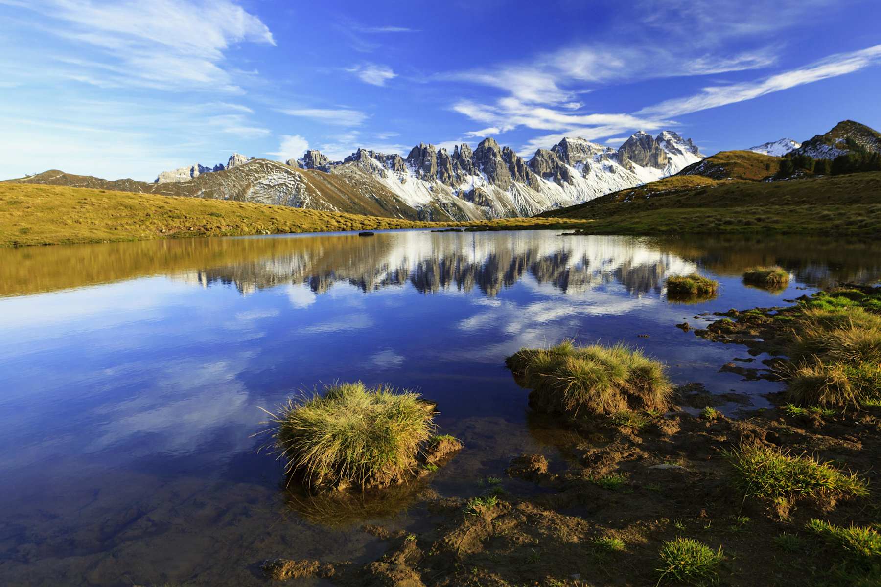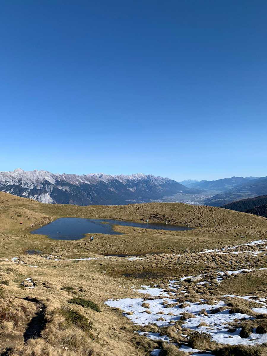 An schönen Tagen spiegeln sich die Kalkkögel im Salfeinssee und bieten ein einzigartiges Fotomotiv. Die Einkehr in der Kemater Alm ist unbedingt zu empfehlen.