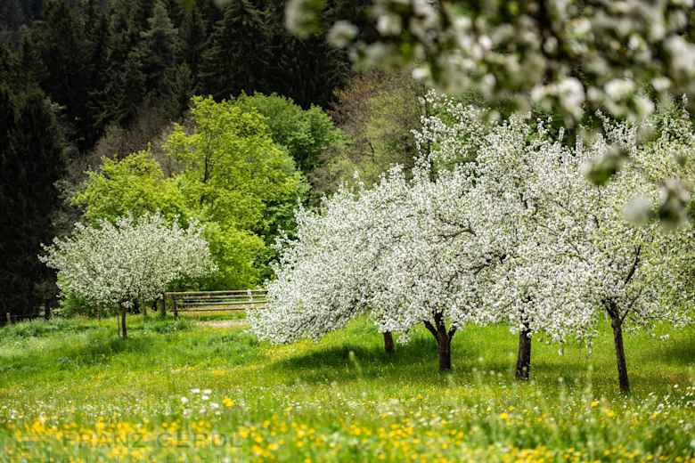 Im Frühling ist es hier im Mostland besonders schön, denn dann blühen die vielen Obstbäume.