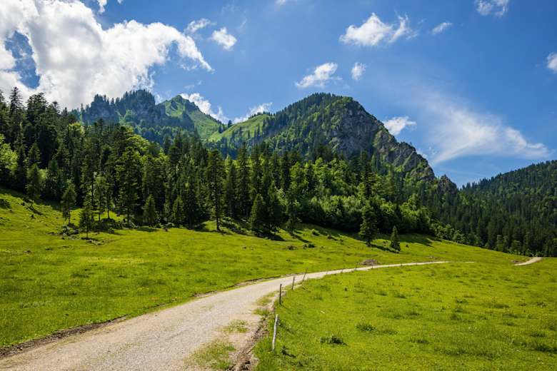 Die urige Hinteralm versteckt sich auf 1.140 m Höhe zwischen Hochfelln und Hochgern in den Chiemgauer Alpen. Sie ist von Urschlau bei Ruhpolding in rund 2,5 h zu erreichen.