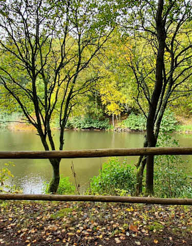 Der Weg führt weiter steil hinunter ins Tal des Lahrbachs zu den vier, wegen des rauen Klimas, „kalten“ Dörfern: Kaltennordheim, Kaltensundheim, Kaltenlengsfeld und Kaltenwestheim. Nach der Überquerung des Wasserlaufes gelangt man vor das Rechte der beiden Dörfer, Mittelsdorf an der Stedtenmühle. Hier führt ein Zubringerweg, mit grünem “Ö” markiert, ins benachbarte Kaltensundheim, 2,5 km.