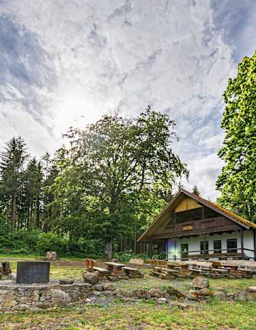 Von Dermbach gibt es einen Zubringer, der direkt zur Fatima-Kapelle führt, oder man nimmt den Gleichen wie am Tag zuvor zum HOCHRHÖNER®. Hier sieht man nach einer langen Waldwiese einen Pavillon der Staudte-Aussicht oberhalb von Dermbach und dann die Fatima-Kapelle.