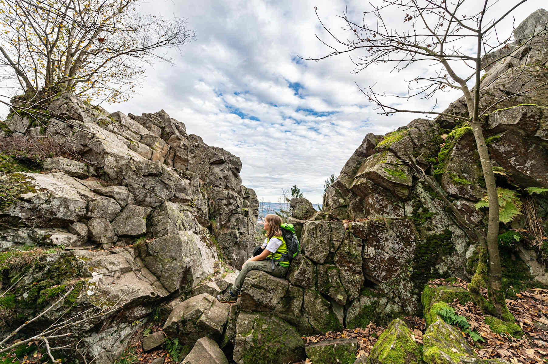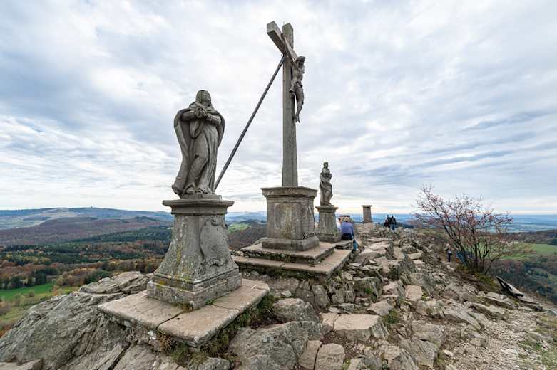 Man klettert einen felsigen Pfad hinauf und erreicht auf dem Gipfel der Milseburg die Gangolfskapelle und eine barocke Kreuzigungsgruppe. Verschiedene Infotafeln weisen auf den Gipfelwall, die keltischen Siedlungsterrassen und auf das ehemalige Tor hin. Von der Historie geht es wieder in die Natur, denn im Naturschutzgebiet Oberbernhardser Höhe blühen Silberdisteln und Orchideen.