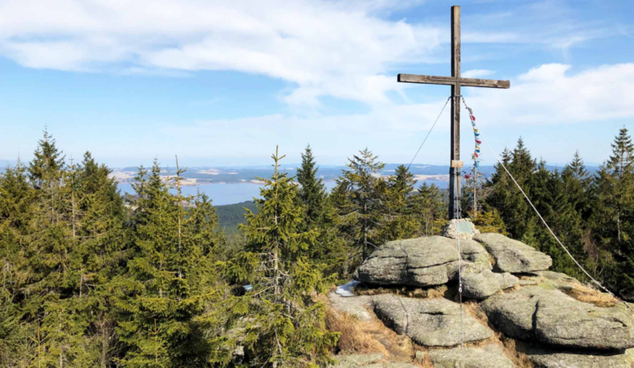 Gipfelkreuz am Bärenstein Foto: Ferienregion Böhmerwald, Weissenbrunner Wunderschöne Aussicht am Hochbuchet mit Wellnessliege Foto: Ferienregion Böhmerwald Die Michaelsquelle mit Kneippbecken Foto: Ferienregion Böhmerwald Beschilderung am Weg der Entschleunigung Foto: Ferienregion Böhmerwald Bildergalerie (4)