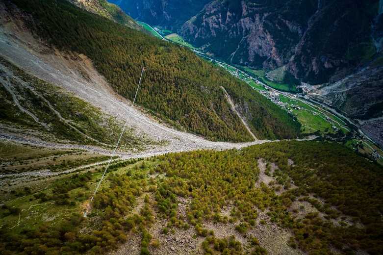 Aus der Vogelperspektive - weiter unten liegt das Dorf Randa Foto: Zermatt Tourismus, Valentin Flauraud