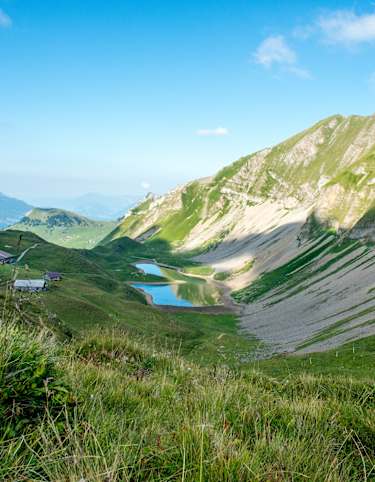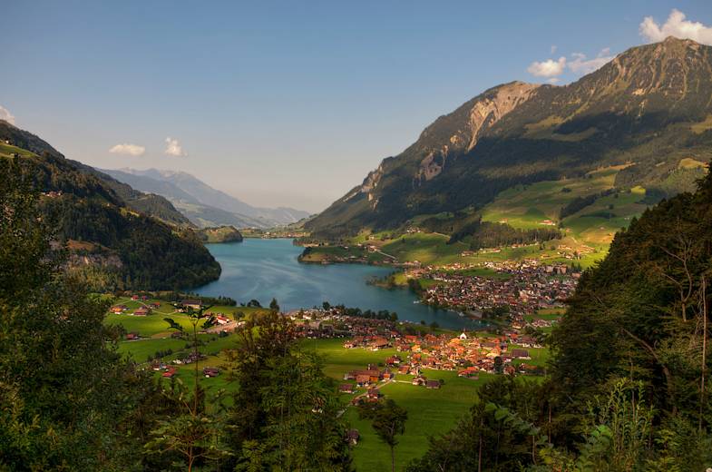 Von der sumpfigen Hochebene der Älggialp, dem Mittelpunkt der Schweiz, wandert man durch kleine Wälder Richtung Brünigpass. Schon von weitem grüsst das türkisblaue Wasser des Lungernsees, den man nach einem anstrengenden Abstieg über schmale Pfade erreicht. Das Ziel der siebten Etappe ist das Dorf Lungern.