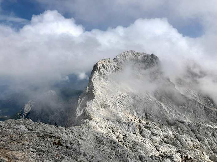 ACHTUNG: Aufgrund eines Steinschlages ist die hier vorgestellte Route auf den Grintovec aktuell nicht begehbar. Auf der Seite stanje-poti.pzs.si/en.php ist der aktuelle Status aller Wegsperren im Slowenischen Alpenraum einsehbar.