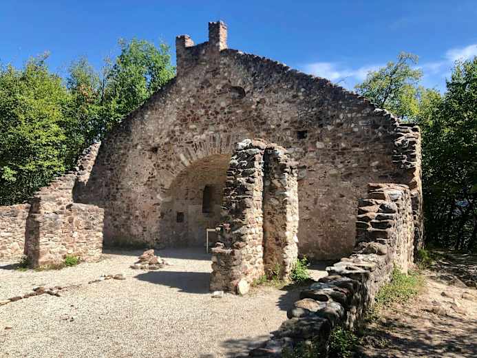 Der Abstieg erfolgt über die Malga di Romeno, deren lokale Spezialitäten eine zweite Einkehr rechtfertigen. Am Hochplateau führt der Weg in der Folge auf und ab bis zum Lawinenspitz (1.676 m) mit seinem grandiosen Tiefblick ins Etschtal. Über den Prazollsteig verliert man rasch an Höhe und ehe man sich versieht, erreicht man wieder Altenburg. Anstatt durch die Rastenbachklamm erfolgt der letzte Teil des Abstieges über das Nussental. Davor empfiehlt sich jedoch ein kurzer Abstecher zur Kirchenruine St. Peter, die vermutlich älteste Kirche Südtirols.