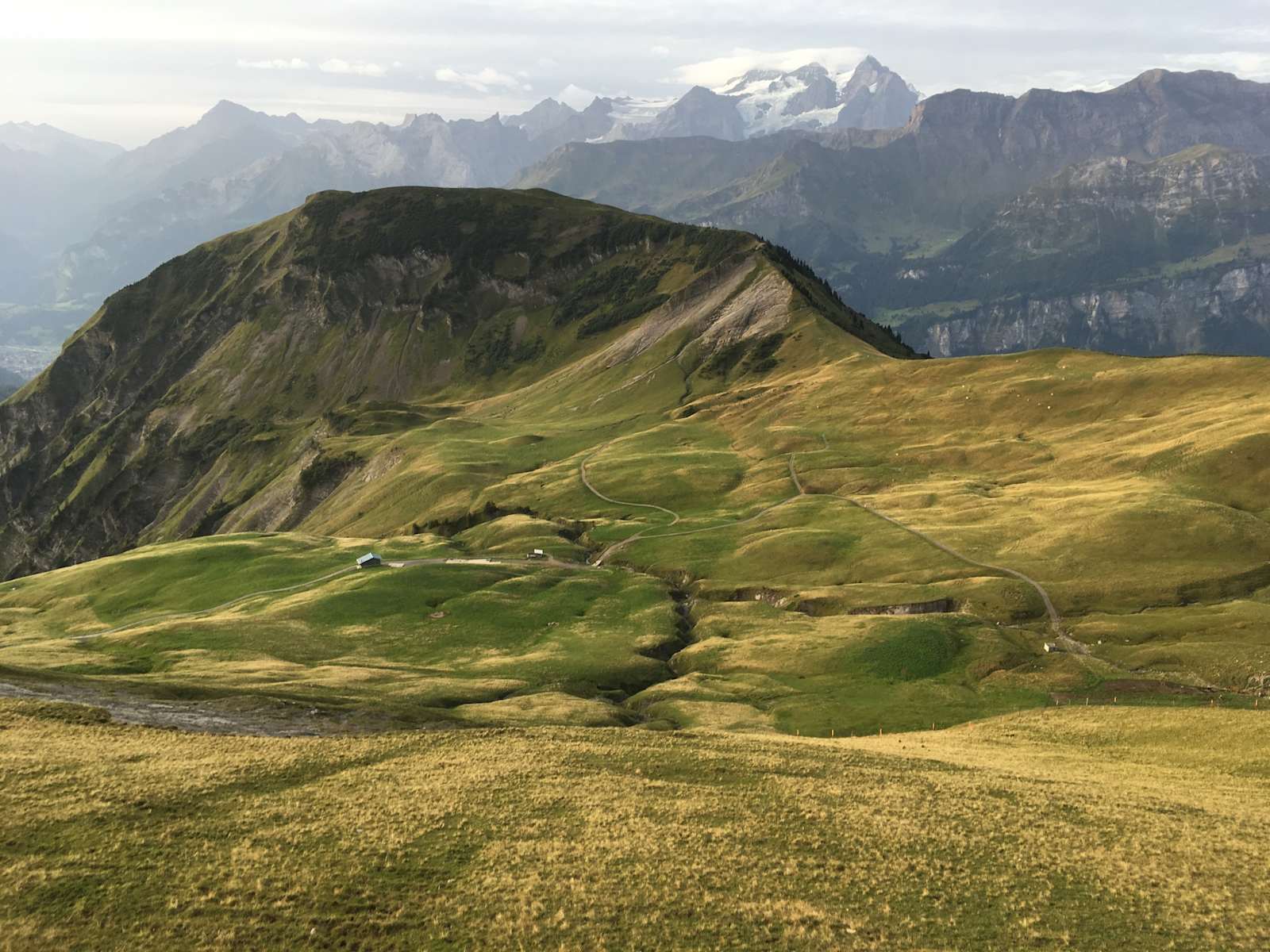 Los geht es zuerst auf der Naturstrasse und dann dem Wanderweg entlang am Finsterbüel vorbei nach Breitenfeld. In der Alpkapelle finden im Sommer regelmässig Gottesdienste statt. Von hier führt der Weg weiter zum Bärghuis Schönbüel, wo sich ein Zwischenstopp lohnt. Zum Gipfel sind es nun noch rund 200 Höhenmeter. Auf dem Gipfel ist die Wetterhorngruppe zum Greifen nahe und auch Eiger, Mönch und Jungfrau sind gut zu sehen.