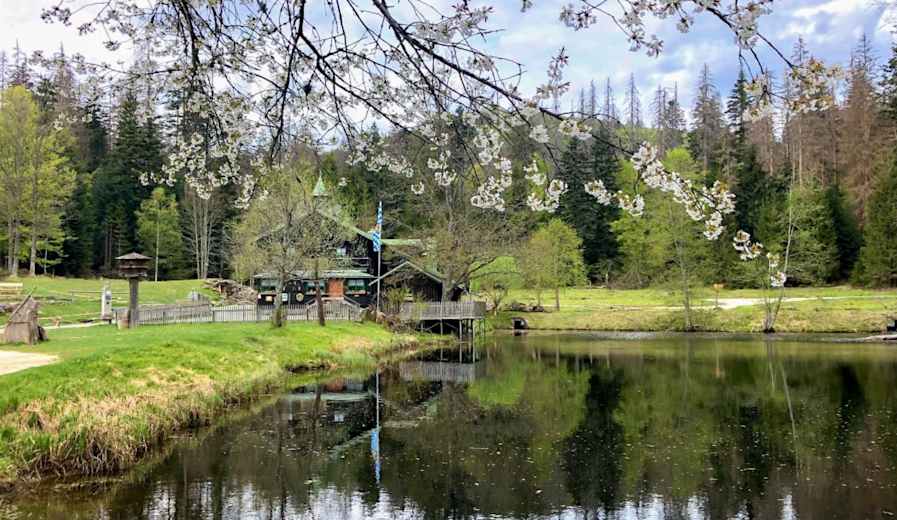 Nationalparkzentrum Falkenstein mit Tierfreigelände, Steinzeithöhle und Haus zur Wildnis, Schmalzbach-Schwelle mit Schwellhäusl.