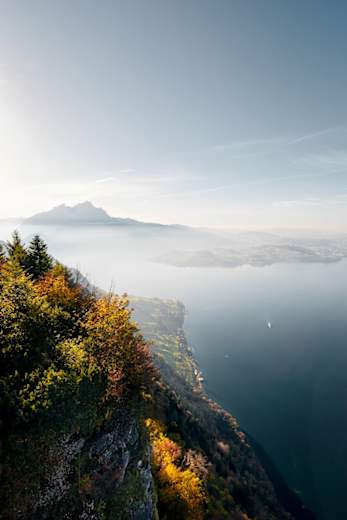 Im noblen Bürgenstock Resort finden Sie in einem der vielen Restaurants einen passenden und gemütlichen Platz für Ihren Kaffee und Kuchen. Es folgt eine aussichtsreiche Wanderung entlang des Lernpfades Felsenweg. Tafeln informieren anhand eines QR-Codes über die Geologie und Geschichte des Felsenwegs, Bürgenbergs und der Umgebung. Der Weg ist gesäumt von viel Grün, dass sich im Herbst zu leuchtenden Farben verwandelt. Bald erreichen Sie den Hammetschwand Lift. Europas höchster Aussenlift ist eine Meisterleistung aus dem Jahre 1905. Die Fahrt im Lift sowie die Plattform oben bieten erneut eine spektakuläre Aussicht.