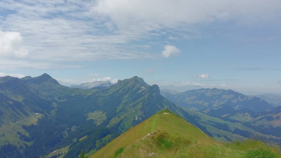 Vom Schimbrigbad wandern Sie über einen Wiesenpfad hinauf bis zum Waldrand. Im Zickzack durchqueren Sie den Wald. Bereits hier können Sie zwischen den Bäumen die tolle Aussicht auf Entlebuch erhaschen. Nun folgt der spektakulärste Teil der Wanderung. Die letzten 160 Höhenmeter bis zum Gipfel sind grösstenteils auf dem Grat. Anfangs säumen noch junge Bäume den Grat, doch die letzten Meter gehen Sie auf dem blanken, grasbewachsenen Grat. Von hier bietet sich Ihnen eine tolle Aussicht auf den Titlis und die Berner Alpen. Auch der Vierwaldstättersee ist auf der rechten Seite des Grates zu sehen. Kurz vor dem Gipfel kreuzt ein Weidezaun den Grat. Ein Gatter gewährt Ihnen freien Durchgang zum nahegelegenen Gipfelkreuz. Geniessen Sie den Rundumblick!