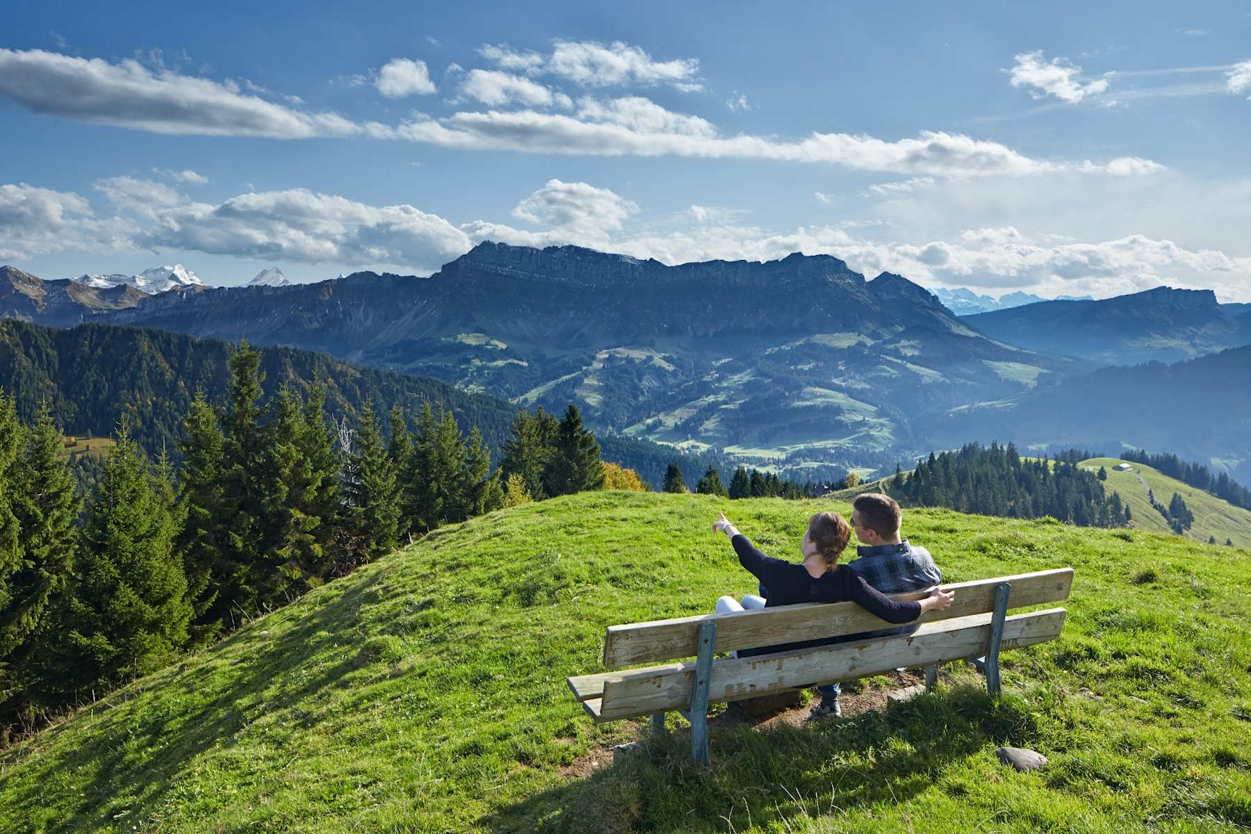 Ausruhen und das Panorama geniessen auf dem Wachthubel – Im Hintergrund der Hohgant Foto: Emmental Tourismus