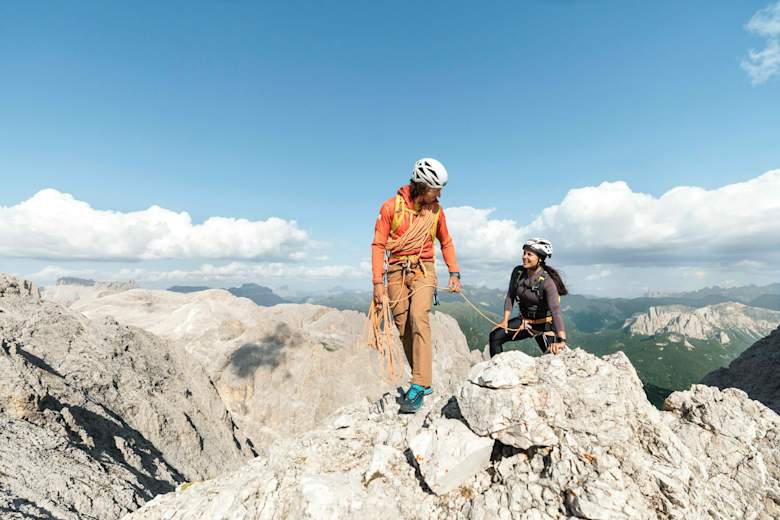 Diese Runde um die stille Seite des Rosengartens in den Dolomiten ist landschaftlich herausragend und sehr abwechslungsreich. Dabei gilt es, eine Klettersteigpassage zu meistern, in der man Stahlseile, Eisenhaken und Leitern findet. Als Schlüsselstelle kann man die so genannte Eisschlucht bezeichnen, eine schmale Rinne, in der auch im August noch harter Schnee liegen kann. Die Runde kann sehr gut auf zwei Tage aufgeteilt werden, in dem man entweder auf der Santnerpasshütte oder der Gartlhütte übernachtet.