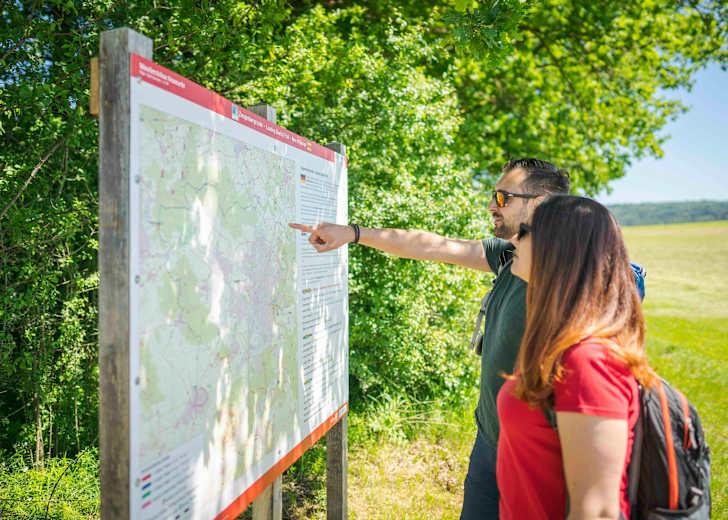 Anschauliche Übersichtstafeln helfen bei der Orientierung auf der Zeugenbergrunde. Foto: Dietmar Denger, Neumarkt i.d. Oberpfalz
