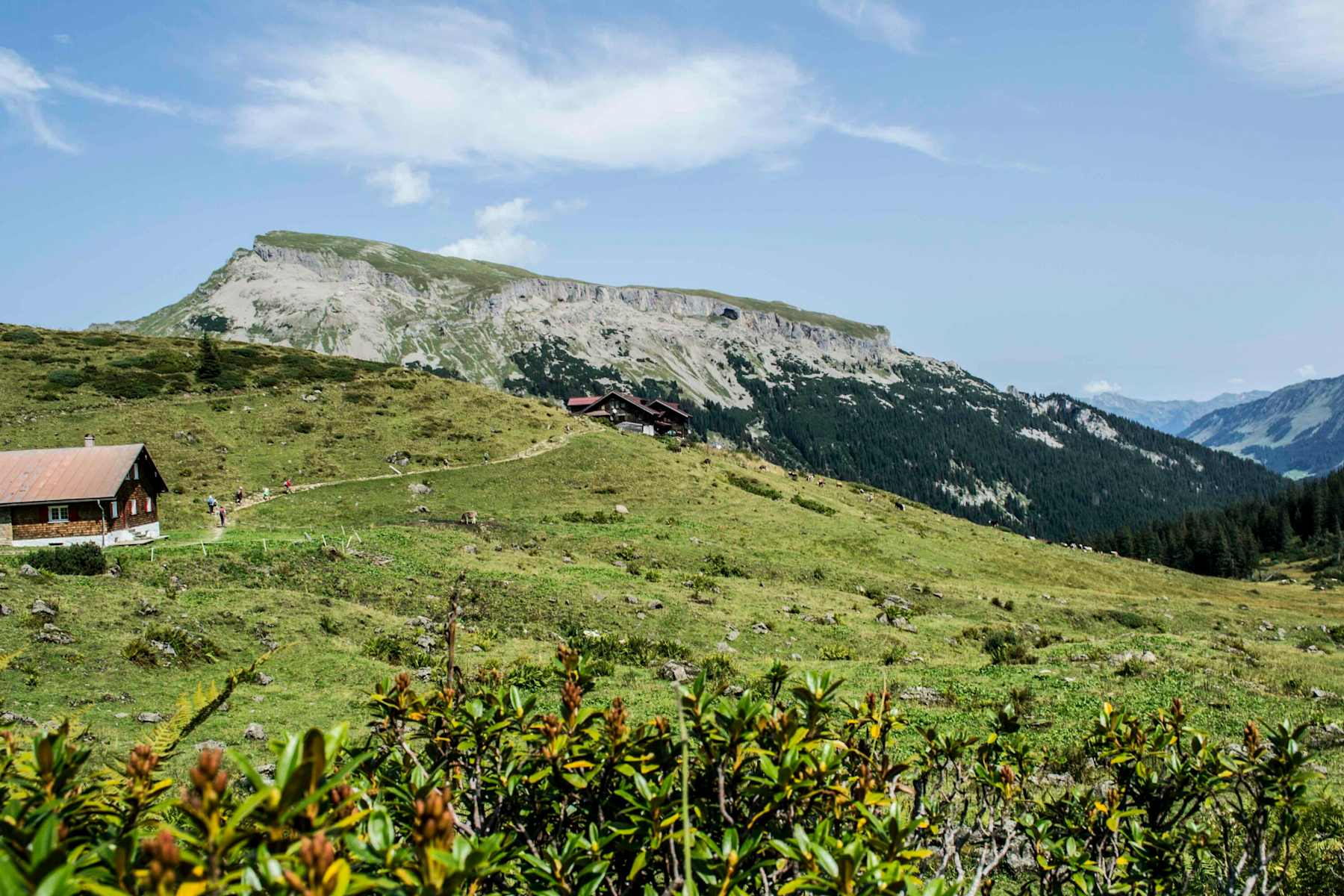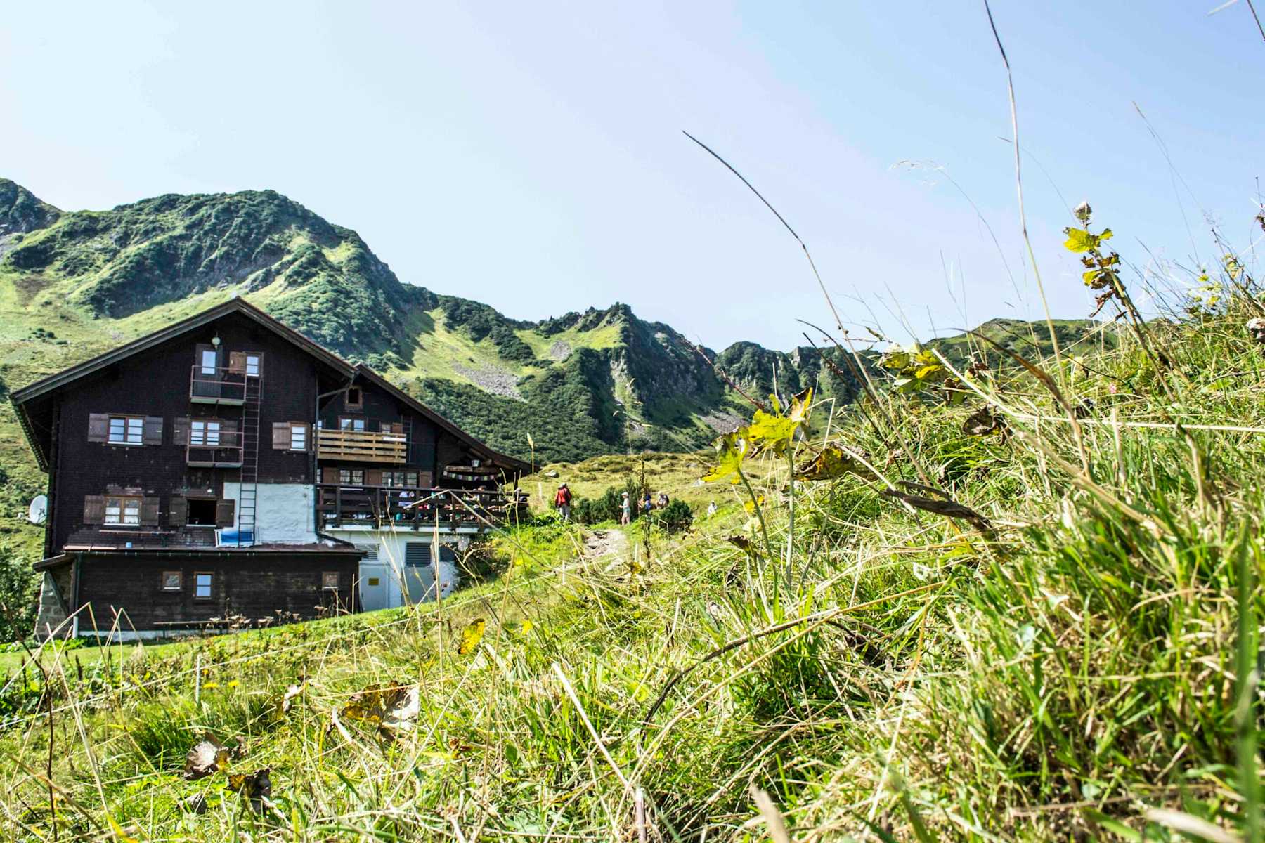 Die Schwarzwasserhütte mit dem Hohen Ifen Foto: Carolin Schratt, Kleinwalsertal Tourismus