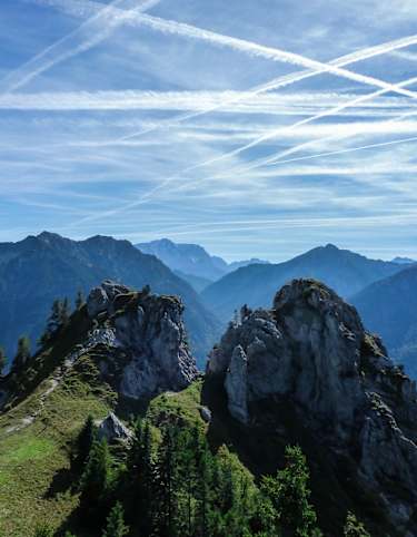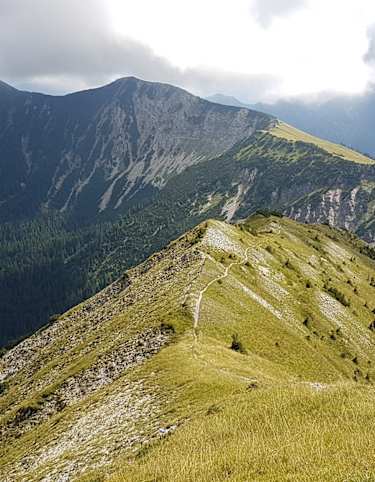 Nach einer ausgiebigen Gipfelpause wandern wir am Anstiegsweg zurück zur Wegverzweigung und hinunter ins Windachtal bis zum Gasthaus Fiegl. Dabei sollten wir unbedingt den Fahrplan beachten.