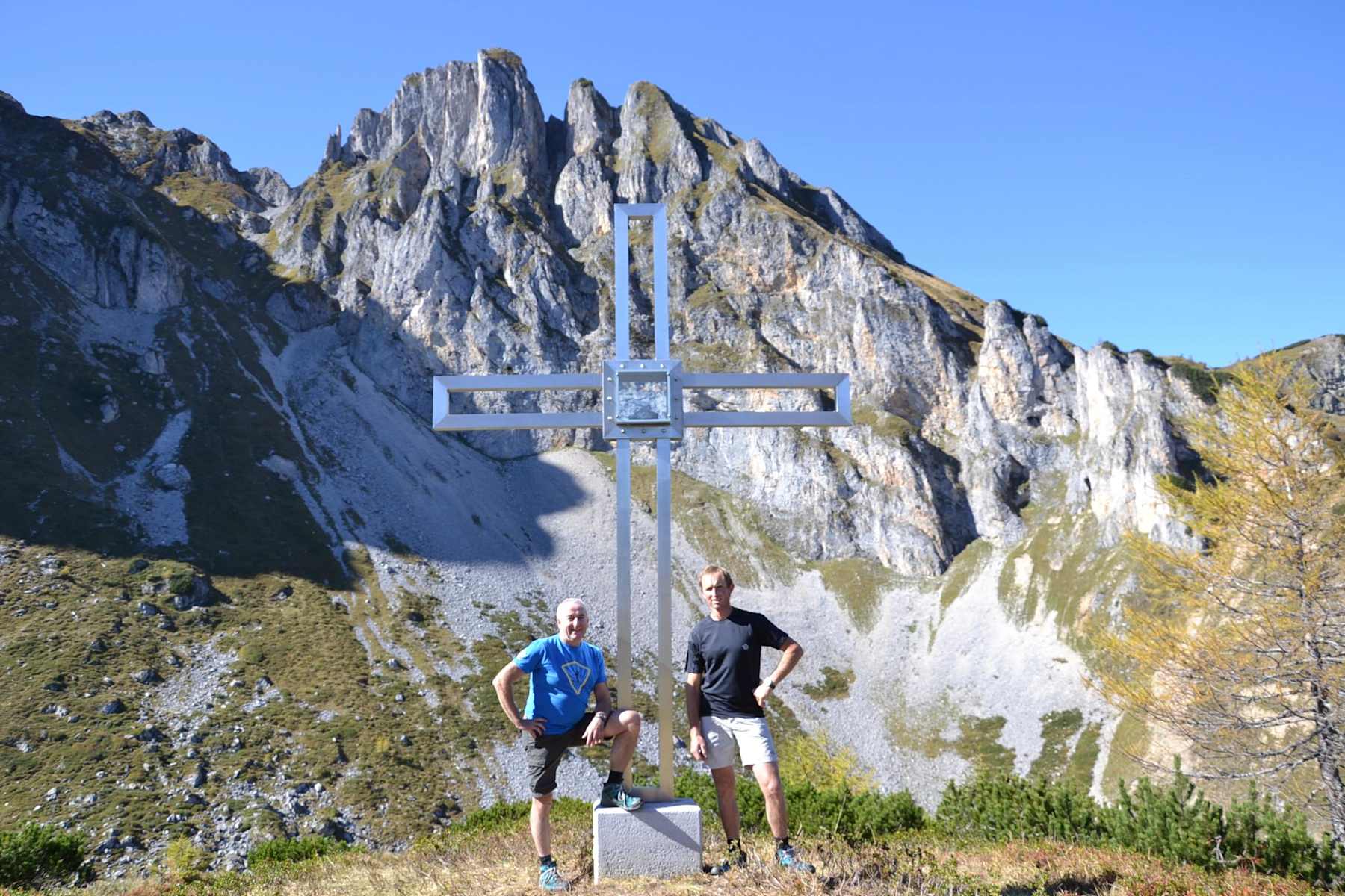 Man biegt nach rechts ab und erreicht über einen kurzen Steilaufschwung das Alpenvereinskreuz auf dem Schober, 1.940 m. Hier macht man eine Pause und genießt den wunderbaren Ausblick auf die mächtigen Wände des Sandkogels und der Höllwand, dem Heukareck und ins Salzachtal. Mit großer Wahrscheinlichkeit kann man auch Gämsen beobachten, die in diesem Gebiet sehr zahlreich vorkommen.