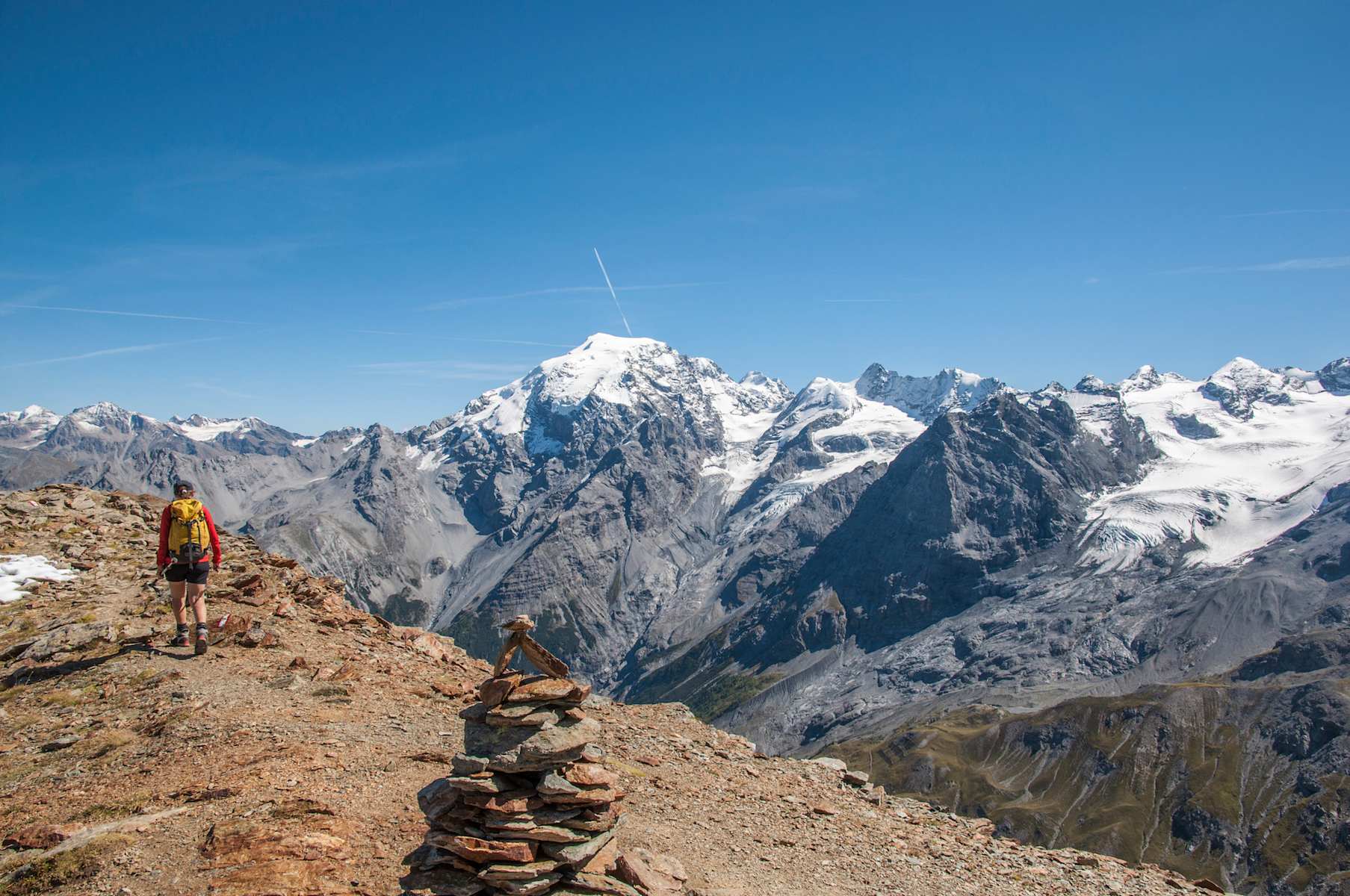 Die Rötlspitz steht nur knapp 300 Höhenmeter oberhalb des Stilfser Jochs. Dementsprechend kurz wäre ein Anstieg von der Passhöhe auf diesen schönen Panoramagipfel. Erlebnisreicher wird die Tour durch einen Start an der Furkelhütte oberhalb von Trafoi. Der aussichtsreiche Goldweg nimmt uns mit hinauf zum Goldsee und weiter zum Gipfel.