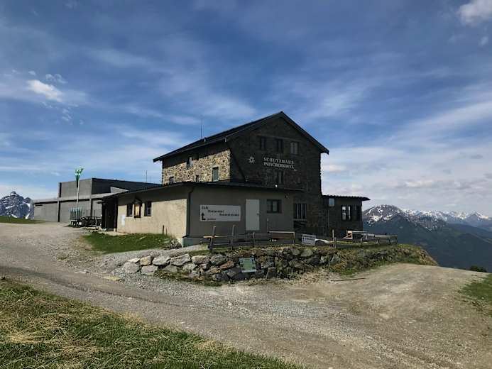 Flacher und sogar kinderwagentauglich ist der Anstieg über den Forstweg, der von der Bergstation zuerst gegen Süden führt und dann in einer Runde über die Patscherkofel Gipfelstube zum Gipfel leitet.