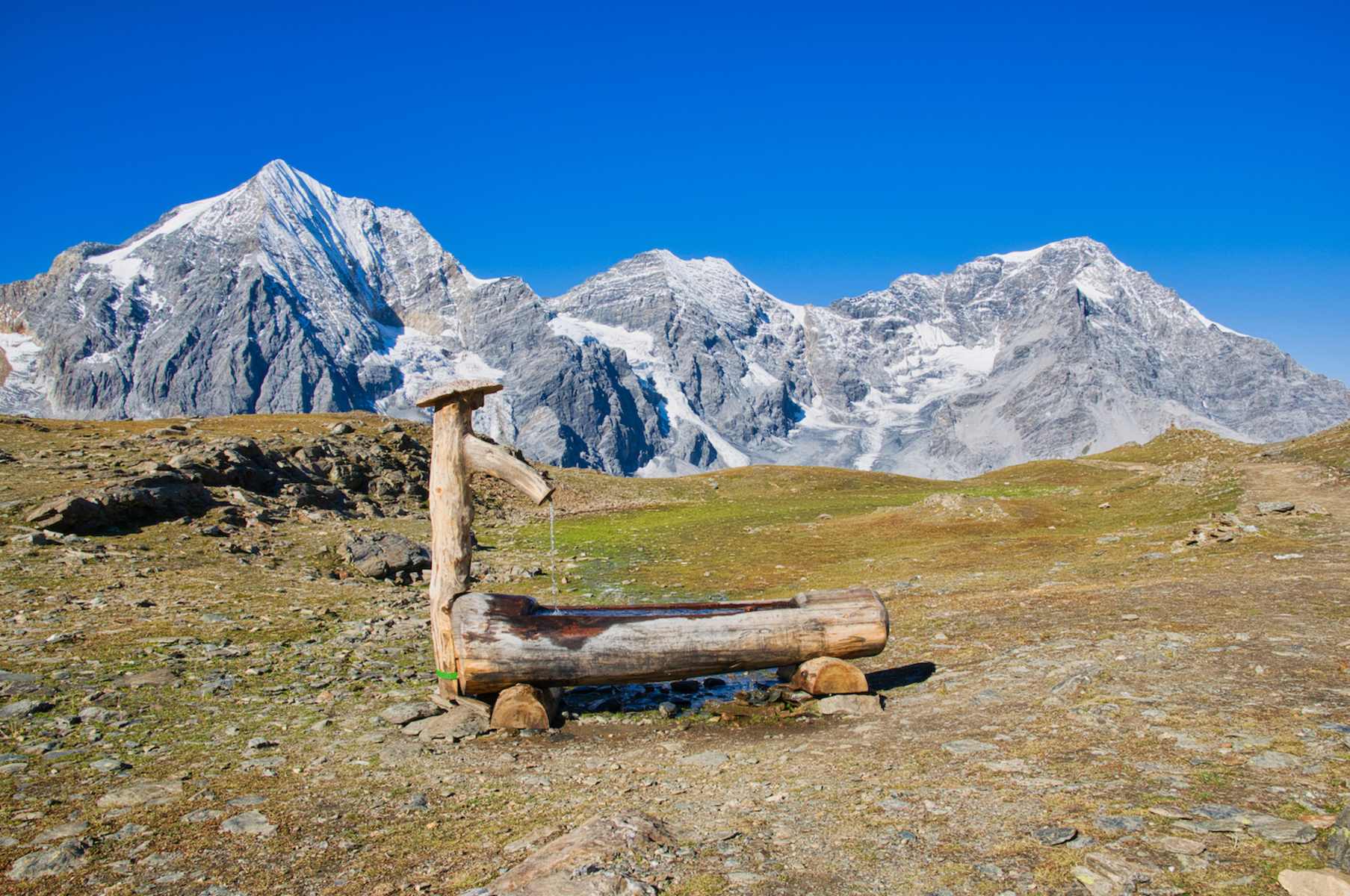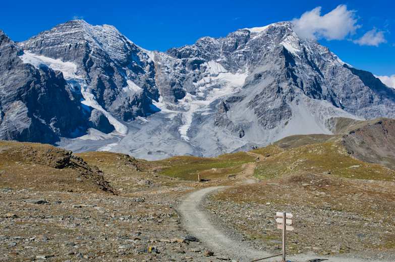 Von Sulden fahren wir mit der großen Seilbahn zur Bergstation , die etwas oberhalb der Schaubachhütte liegt. Nun folgen wir dem Weg in Richtung Madritschhütte. Hierzu gehen wir kurz auf der breiten Skipiste aufwärts, zweigen dann aber gleich links auf den „Panoramaweg“ ab. Die Aussicht auf Königsspitze, Zebru und Ortler wird mit jedem Meter Höhengewinn großartiger. Der Weg steigt zuerst etwas steiler an, wird aber bald schon deutlich flacher, so dass wir gemütlich die Madritschhütte erreichen.