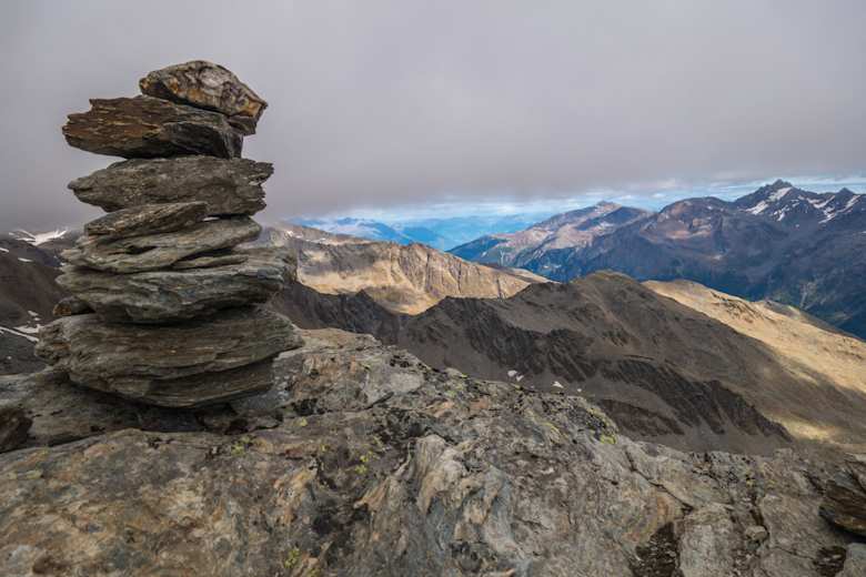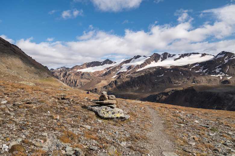 Nachdem wir uns an der Aussicht satt gesehen haben machen wir uns an den Abstieg zurück zur Zufallhütte. Hierfür nehmen wir den vom Aufstieg bekannten Weg durch das Butzental bis wir wieder auf den Steig von der Casatihütte treffen. Im Abstieg sind die Markierungen teilweise etwas schwierig zu sehen, deshalb achten wir immer genau auf die nächste Markierung.