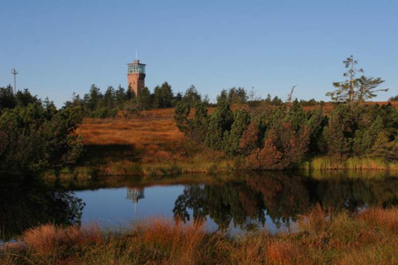 Die vierte Etappe beginnt mit einem Aufstieg auf die Hornisgrinde. 1164 m ist die höchste Erhebung des Nordschwarzwalds und bietet einen fantastischen Rundumblick auf Rheinebene, Vorgebirge und das Langenbachtal. Bei schönem Wetter ist der Aussichtsturm geöffnet. Ein interessanter Lehrpfad führt auf Bohlen über das 5000 Jahre alte Hochmoor. Besonders im Herbst zeigt sich hier ein wunderschönes Farbenspiel.