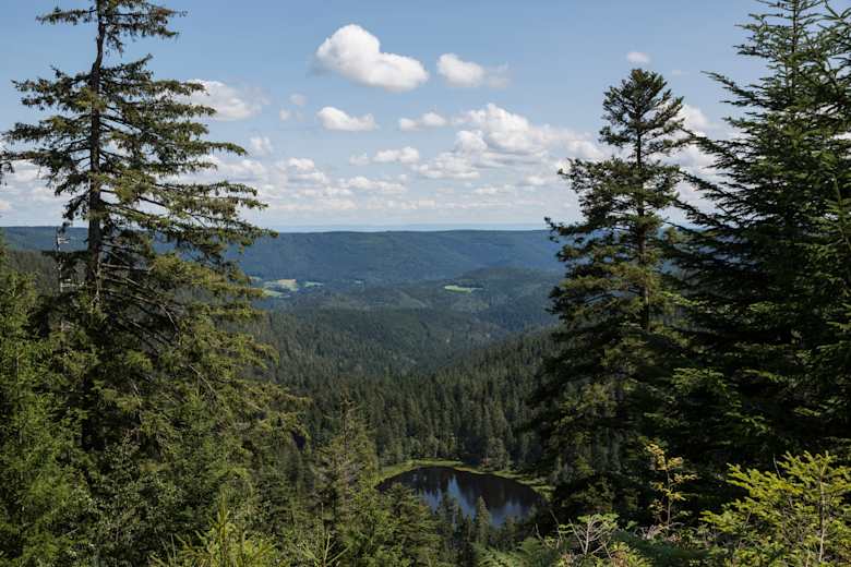 Die vierte Etappe des Baiersbronner Seensteigs eignet sich besonders gut, um Luft zu holen. Immerhin geht es auf die 1.164 m hohe Hornisgrinde hinauf, die den höchsten Punkt des Nordschwarzwaldes in Baden-Württemberg markiert. Die Aussicht ist entsprechend grandios. Danach geht es abwärts bis nach Schönmünzach.