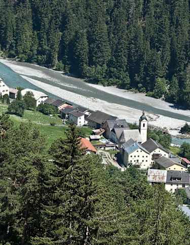 Zum Reschenpass und in Graun Abzweig ins Langtauferer Tal bis zum Straßenende in Melag.
