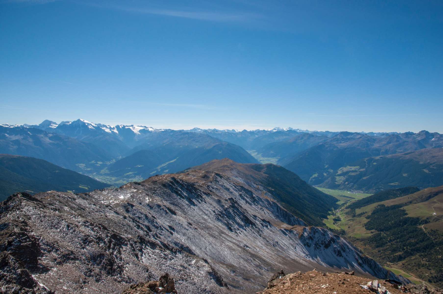 Die Gipfel links und rechts vom Matscher Tal erhalten relativ selten Besuch. Die Portlesspitze auf der linken Talseite lockt mit ihrer sonnigen Südseite und ihrer wunderbaren Aussicht. Diese müssen wir uns allerdings erst mit einem steilen und dadurch recht mühsamen Anstieg erkaufen.