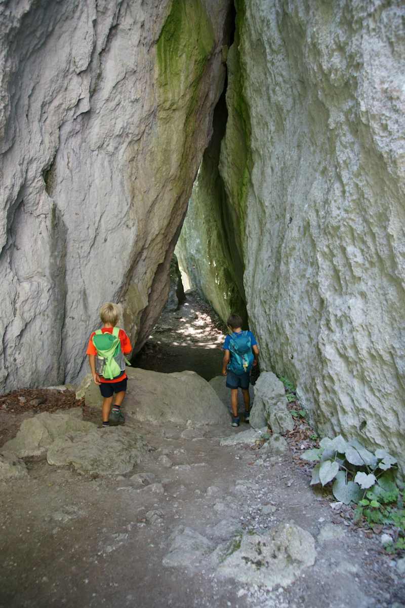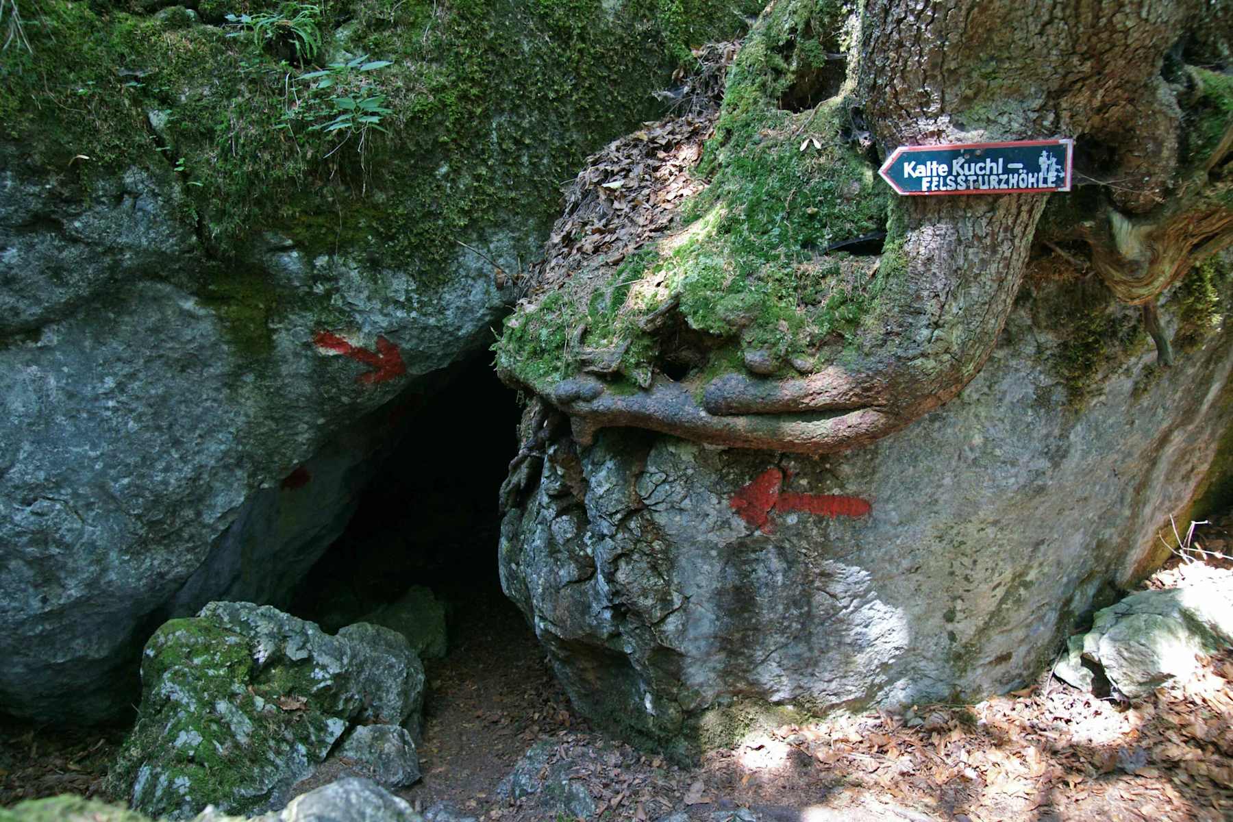 Damit wir uns in dem Steingewirr nicht verirren, folgen wir den Pfeilen, die uns die Richtung vorgeben. Wir kommen zu engen Schluchten, darunter auch zur »Teufelsschlucht«, und erforschen anschließend die teils niedrigen Felssturzhöhlen mit den Namen »Kalte Kuchl« und »Franzosenhöhle«, in denen es selbst an heißen Sommertagen sehr kühl ist. Spätestens jetzt packen wir unsere Taschenlampe aus.