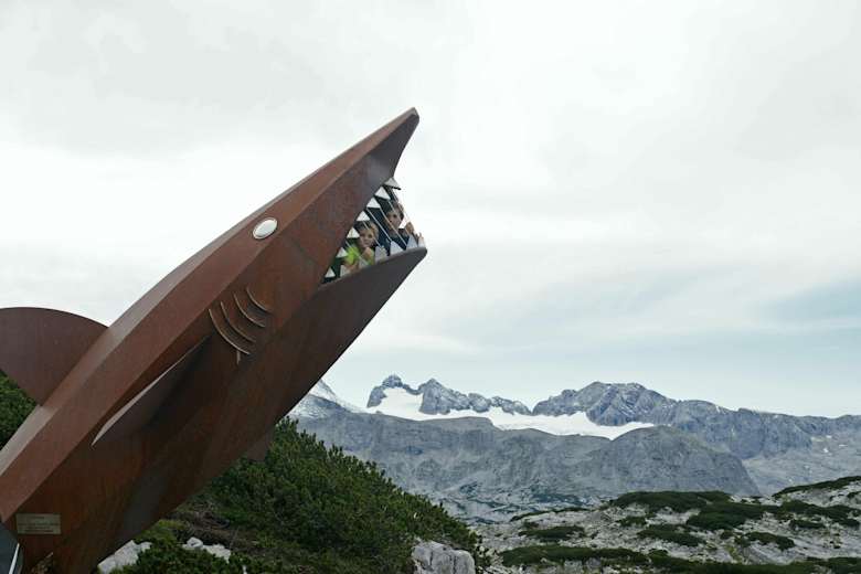 Was macht eigentlich ein Hai im Dachsteingebirge? Foto: Eva und Hannes Mittergeber, Rother Bergverlag