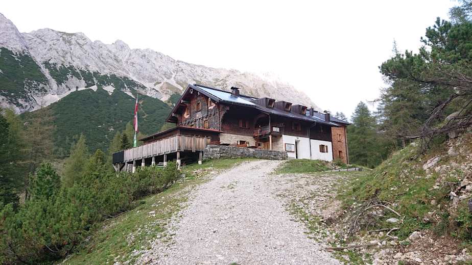 Sich rechts haltend gelangt man bald darauf zum idyllischen Hallerangerhaus auf 1.768 m. Unweit des Hütte steht die Hallerangeralm und eine kleine Kapelle.