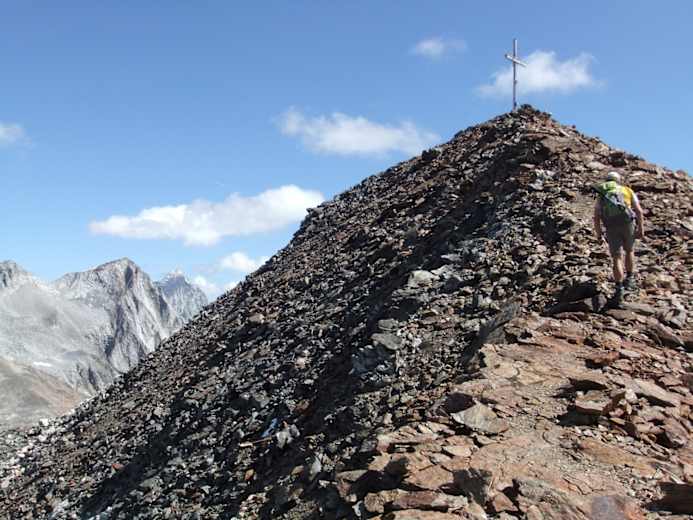 Die Schwarze Wand ist eigentlich der Hausberg der Rieserfernerhütte. Leider muss man aber hier den Gelttalferner überqueren, was die Tour für Wanderer ausschließt. Daher bietet sich der Anstieg über das schöne Wielental oberhalb von Bruneck an. Er ist durchgehend markiert, erfordert allerdings in der steilen Südwestwand einen sicheren Tritt.