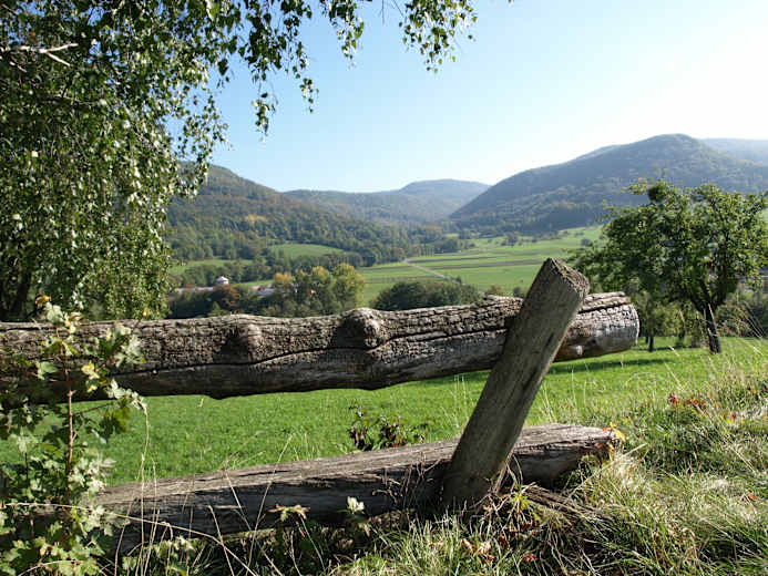 Vom prächtigen Aussichtspunkt westlich des Freizeitgeländes “Olgahöhe“ ist der markante „Albbalkon“Dreifürstenstein - bereits gut zu sehen. Zunächst führt der Weg aber mitten durchs Naturschutzgebiet und herrliche Streuobstwiesen hinab ins Buchbachtal. Der nun folgende Aufstieg durch vorwiegend lichten Buchenmischwald zum 854 m hohen Dreifürstenstein mit Schutzhütte und Grillstelle ist nicht ohne, aber die Aussicht oben entlohnt für alle Mühen.