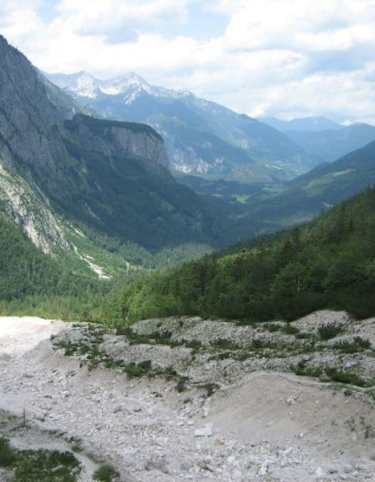 Weiter auf der Königsetappe. Auf dem Weg Nr. 618, hinter Sinabell und Wasenspitze vorbei bis zur Abzweigung zum Weg 619. Reizvoll ist der Tiefblick auf den kleinen, in einem Felskessel ruhenden Höllgrabensee (Silberkarsee) und die großartige Natur mit weitläufiger Aussicht über die Landschaft „Am Stein“. Ein verkarstetes Hochplateau, das sich über 20 km² im Norden und Osten des Dachstein erstreckt, wo kleine Felsgipfel, grüne Hügel, Zirbenwälder und tief eingeschnittene Kare eine wundersame Landschaft bilden. Es folgt der Abstieg über die Stangalm, steil und steinig in Serpentinen hinunter zur Silberkarhütte, vorbei am Klettersteig Siega. Die Hütte auf 1.223 m bietet den Wanderern und Klettersteiggehern reichhaltige Bioprodukte vom eigenen Bio Bauernhof. Das restliche Wegstück ist noch einmal anders und kurzweilig. Es geht durch die romantische Wildwasserklamm am Schleierwasserfall vorbei, über Stiegen und Stege immer am rauschenden Bach bergab. Mit dem Hias Klettersteig und dem 2014 neu erbauten Rosina Klettersteig befinden sich 2 weitere anspruchsvolle Klettersteige gleich in Talnähe.