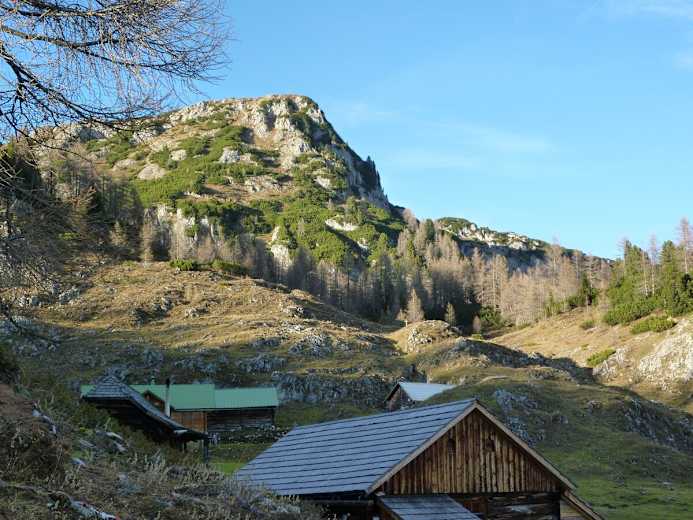 Auf der idyllischen, aber nicht bewirtschafteten Grafenbergalm kann man die selbst mitgebrachte Jause gemütlich verspeisen.