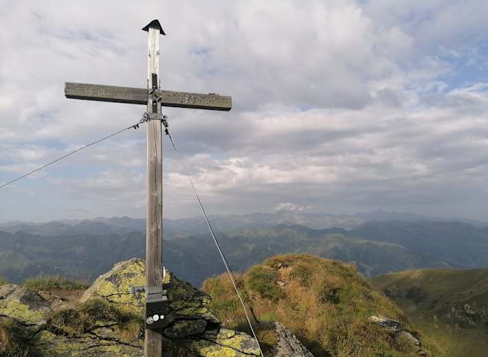 Den Grat entlang, mit Blick auf die Karlseen und den Goldbachsee, führt der Steig direkt zum Gipfelkreuz am Karlspitz. Nach einer kurzen Pause und dem Eintrag ins Gipfelbuch marschierst Du links den fast ebenen Steig weiter. Zum Schluss gehts nochmal bergauf ehe Du den Schreinl erreichst. Zwei Gipfel auf einmal - das hat was. Kann man sich doch an dieser herrlichen Bergwelt kaum sattsehen. Zurück wanderst Du am gleichen Weg oder über die Goldbachscharte, von wo es dann links hinunter ins Bergdorf geht.