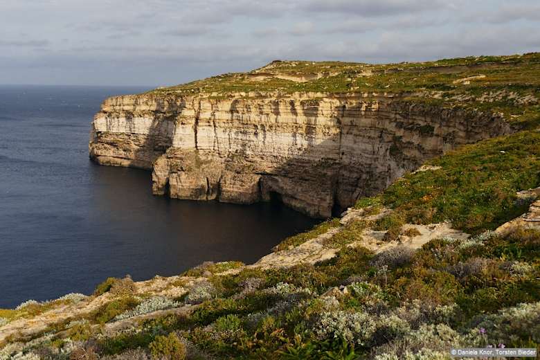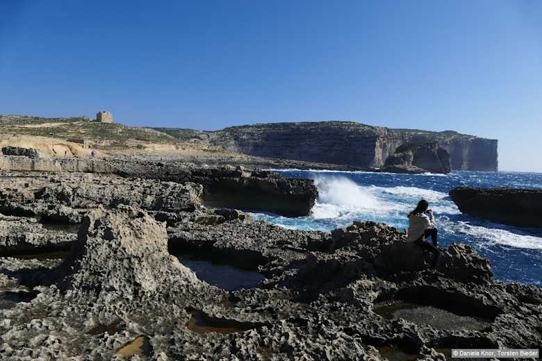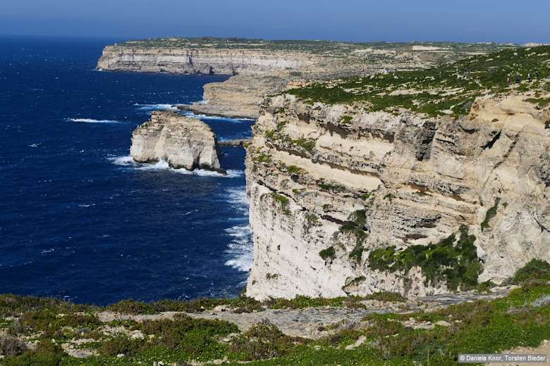 Die Klippen nördlich der Dwejra Bay sind einsam. Foto: Daniela Knor, Torsten Bieder, Rother Bergverlag