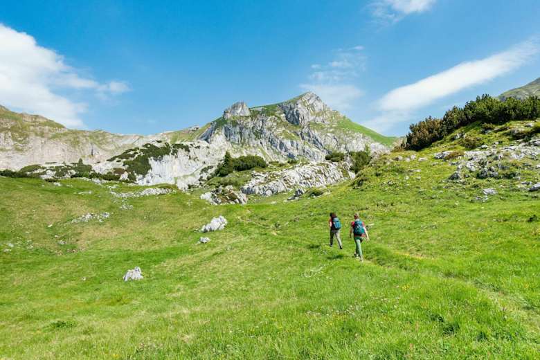 Nun wird es steiler - der Weg fahrt unterhalb der Hochiss hindurchFoto: Bergwelten