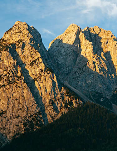 Im nördlichen Karwendelkamm in Bayern, zwischen Westlicher und Östlicher Karwendelspitze, ist der Wörner (2.474 m) der dominierende Berg. Mit seinem langen, schrofigen und gezackten Kamm wirkt er eher trist, und es lässt sich schon aus der Ferne ahnen, was den Besteiger dort oben erwartet. Kommt man dem Gipfelkamm nahe, wird man nicht enttäuscht. Die Route über steil aufragende Fels- und Schutthänge, die von „herber Schönheit“ geprägt sind, erfordert stundenlang höchste Konzentration, ist aber deutlich markiert.
