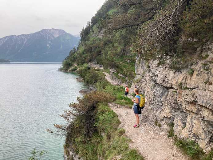 Am Westufer des Achensees - der Weg ist teilweise seilversichert.Foto: Daniel Kubera, Bergwelten