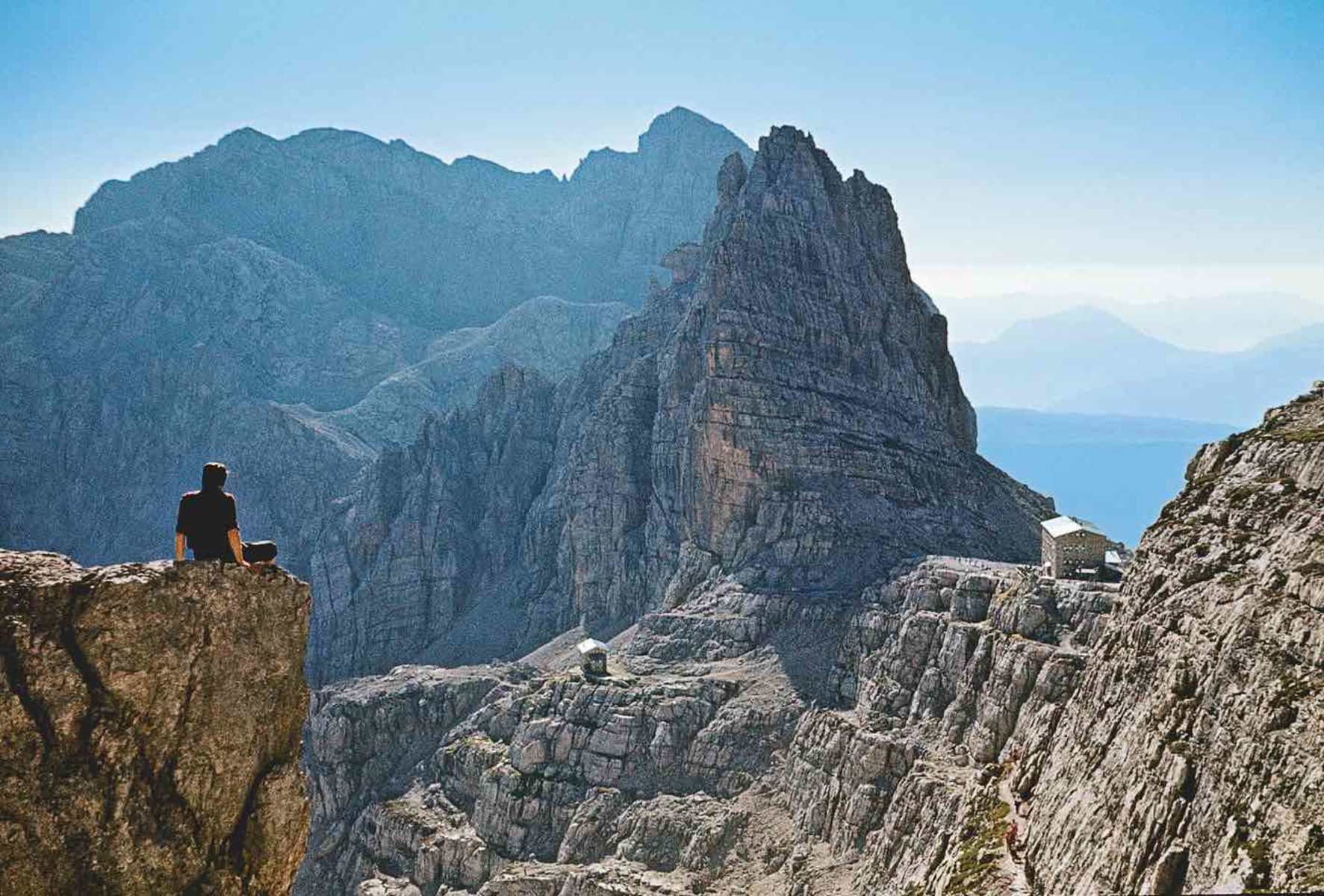 Über steile Felsen führt die „Via delle Bocchette Centrali“ aus der Bocca degli Armi zur Höhe. Foto: Franz Hauleitner, Rother Bergverlag Die Hütten Tosa und Pedrotti mit Monte Dàino und Croz del Rifugio von Norden. Foto: Franz Hauleitner, Rother Bergverlag Am Sfulminigletscher mit Blick nach Westen zur Cima Presanella. Foto: Franz Hauleitner, Rother Bergverlag Bildergalerie (3)