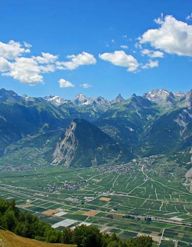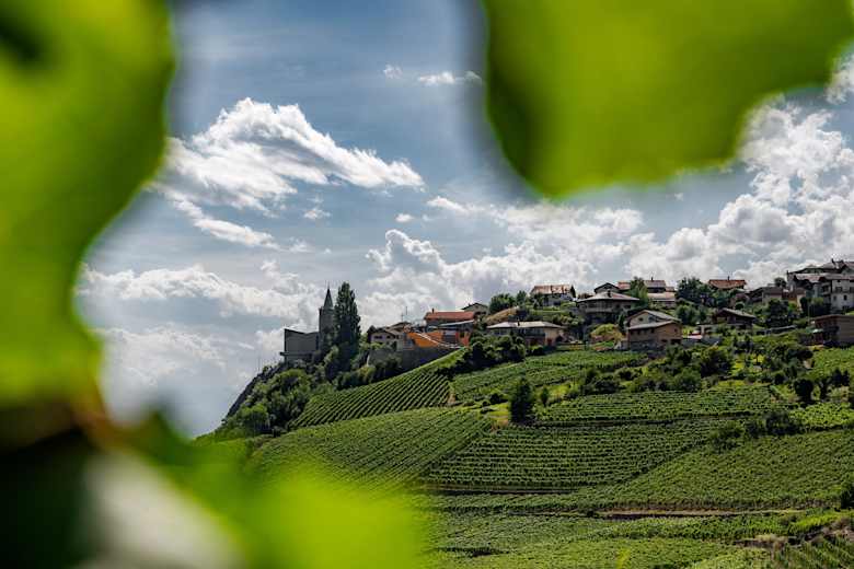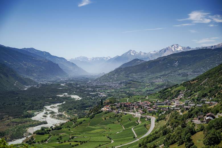 Das Weindorf Varen über dem Rhonetal im Sommer. Foto: My Leukerbad AG