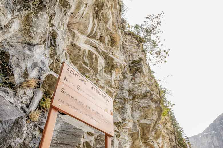 Wer nicht so ganz schwindelfrei ist und sich die Begehung der Leitern nicht zutraut, kann auch vom Fuss der Leitern auf die Strasse wechseln und durch den Tunnel gehen. Ein kurzes Stücke danach trifft man wieder auf den Weg nach Albinen.