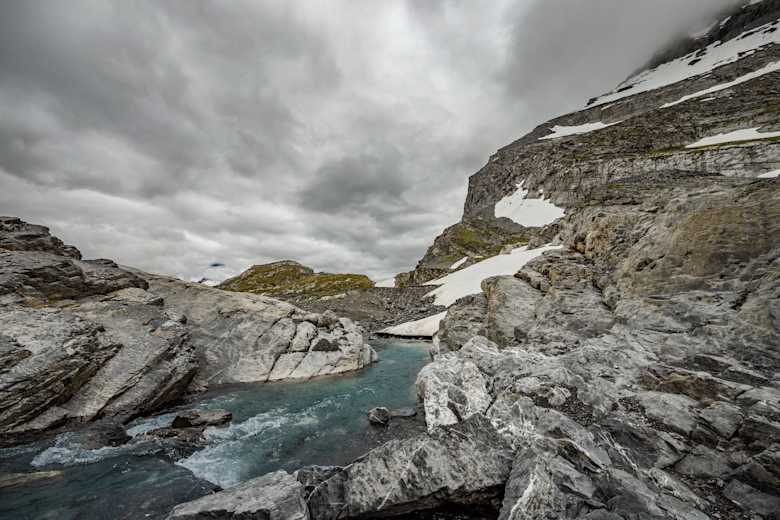 Der Rückweg führt zuerst auf bekanntem Weg zurück zum Lämmerenboden. Auf dem Hochplateau angekommen biegt man links Richtung Lämmerensee ab und wandert auf der linken Seite der Lämmerendalu wieder zurück Richtung Gemmipass.