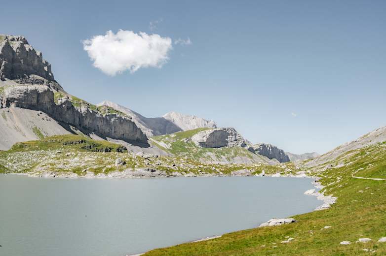 Der Rundwanderweg beginnt am Gemmipass und führt gut beschildert rund um den See. Der Weg ist in beiden Richtungen zu begehen.