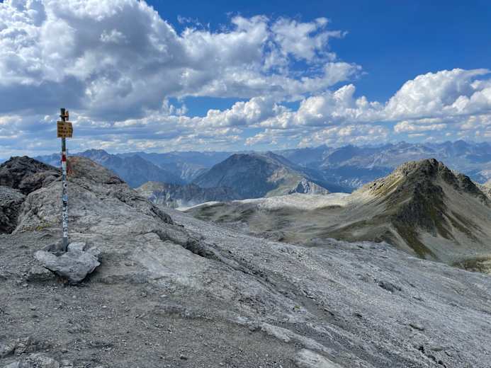 Der 3.033 m hohe Piz Umbrail zählt zu den Ortler Alpen und ist Grenzberg zwischen dem Schweizer Kanton Graubünden und der italienischen Provinz Sondrio. Die nach Italien abfallende Flanke ist Teil des Nationalparks Stilfser Joch. Anfänglich führt der Weg auf den Piz Umbrail auf schmalem, gut begehbaren Pfad, der dann in recht schlottriges Gelände wechselt. Gegen Ende (ca. letzten 300 Hm) ist Trittsicherheit und Schwindelfreiheite erforderlich – es sind einige Stellen im Fels zu bewältigen, die teilweise mit Ketten und Seilen versichert sind.
