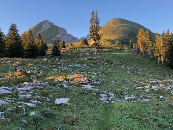 Auf dem blau-weiss markierten Weg am Zuestoll Foto: Simone Bürgler