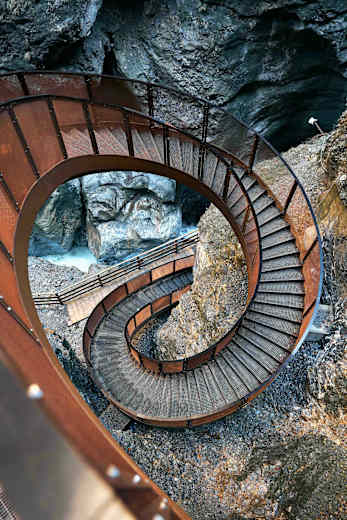 Die Liechtensteinklamm bei St. Johann im Pongau im Salzburger Land ist eine der längsten, tiefsten und imposantesten Klammen Österreichs. Auf Stegen und Treppen kann die Klamm erkundet werden. Nach einer groß angelegten Sanierung gibt es sogar eine neue Attraktion: die Helix - eine 30 m in die Tiefe führenden Wendeltreppe, auf der man dem rauschenden Wasser besonders nahe kommt.